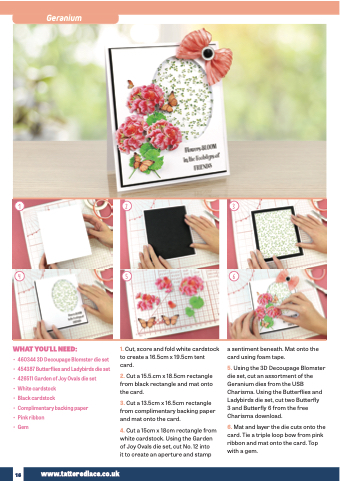 5. Using the 3D Decoupage Blomster die set, cut an assortment of the Geranium dies from the USB Charisma. Using the Butterflies and Ladybirds die set, cut two Butterfly