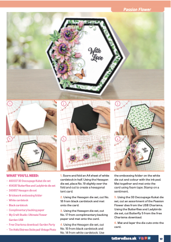 5. Using the 3D Decoupage Kukat die set, cut an assortment of the Passion Flower dies from the USB Charisma. Using the Butterflies and Ladybirds die set, cut Butterfly 5 from the free Charisma download.