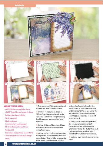 embossing folder to imprint the pattern into it. Tear down one side and ink around the edges using the ink pad. Mat onto the card using foam tape and stamp a sentiment onto the card.