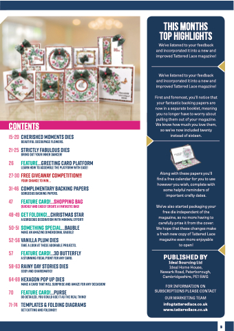 We’ve listened to your feedback and incorporated it into a new and improved Tattered Lace magazine!