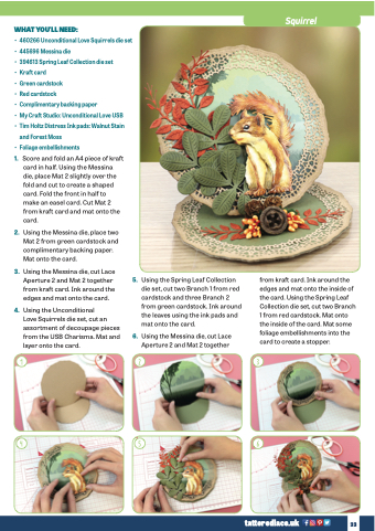 Love Squirrels die set, cut an assortment of decoupage pieces from the USB Charisma. Mat and layer onto the card.