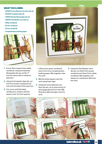 5. UsingtheUnconditionalLove Deer die set, cut an assortment of decoupage pieces from the USB Charisma. Mat and layer onto the card.