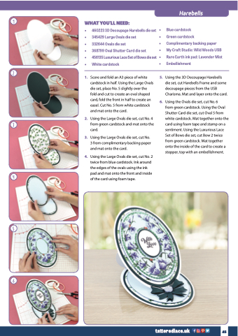 Using the 3D Decoupage Harebells die set, cut Harebells Frame and some decoupage pieces from the USB Charisma. Mat and layer onto the card.