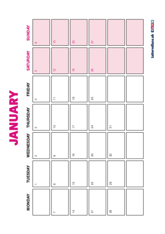 7 8 9 10 11 12 13 14 15 16 17 18 19 20 21 22 23 24 25 26 27 28 29 30 31 M ONDAY TUESDAY WEDNESDAY THURSDAY FRIDAY SATURDAY SUNDAY 123456 JANUARY
