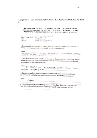 96 Lampiran 13 Hasil Wawancara Uji One To One Evaluation Oleh Peserta Didik 3