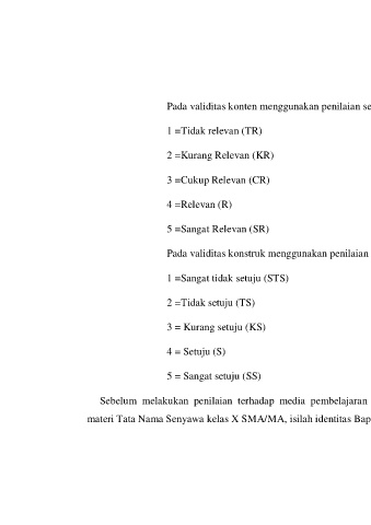 Pada validitas konten menggunakan penilaian sebagai berikut.