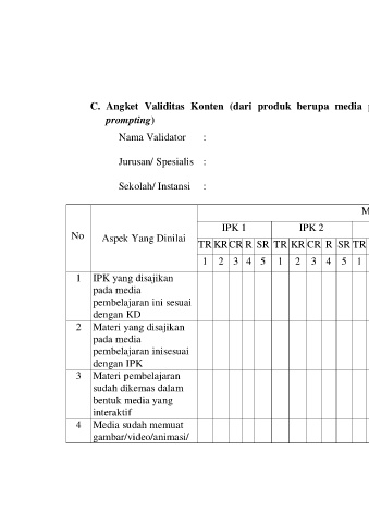 C. Angket Validitas Konten (dari produk berupa media pembelajaran PowerPoint-iSpring terintegrasi pertanyaan