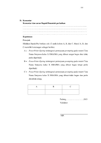 Silahkan Bapak/Ibu berikan cek (√) pada kolom A, B, dan C. Huruf A, B, dan
