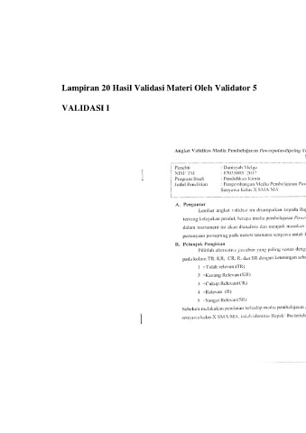 180 Lampiran 20 Hasil Validasi Materi Oleh Validator 5 VALIDASI I