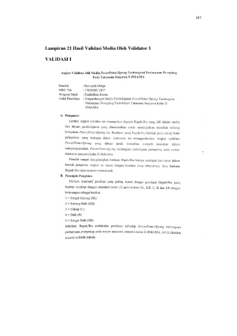 197 Lampiran 21 Hasil Validasi Media Oleh Validator 1 VALIDASI I