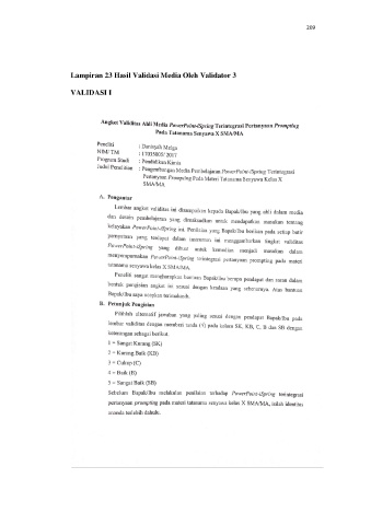 209 Lampiran 23 Hasil Validasi Media Oleh Validator 3 VALIDASI I