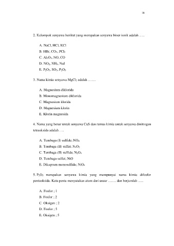 2. Kelompok senyawa berikut yang merupakan senyawa biner ionik adalah …..