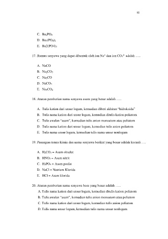 17. Rumus senyawa yang dapat dibentuk oleh ion Na dan ion CO3 adalah …..