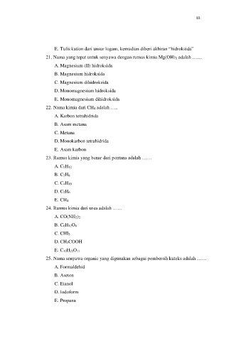 21. Nama yang tepat untuk senyawa dengan rumus kimia Mg(OH)2 adalah ……