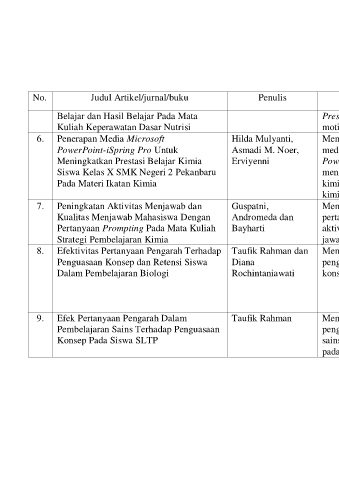 9. Efek Pertanyaan Pengarah Dalam Taufik Rahman Mengetahui efek pertanyaan Pembelajaran dengan menggunakan pertanyaan