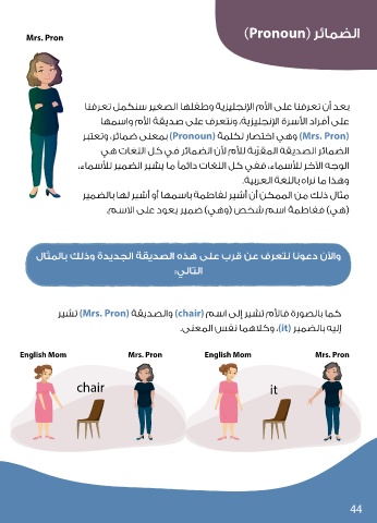 ﺮﻴﺸﺗ (Mrs. Pron) ﺔﻘﻳﺪﺼﻟاو (chair) ﻢﺳا ﻰﻟإ ﺮﻴﺸﺗ م ﺎﻓ ةرﻮﺼﻟﺎﺑ ﺎﻤﻛ