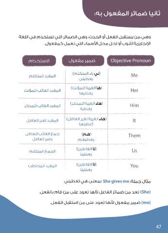 ﻲﻨﻴﻄﻌﺗ ﻲﻫ ﻰﻨﻌﻤﺑ She gives me :ﺔﻠﻤﺟ لﺎﺜﻣ