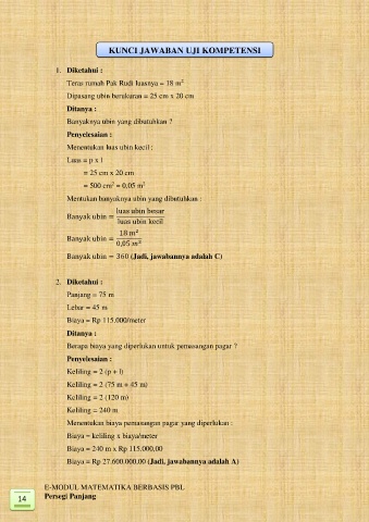 Banyak ubin = 360 (Jadi, jawabannya adalah C)