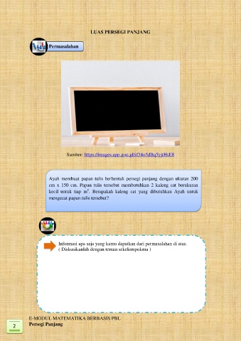 Ayah membuat papan tulis berbentuk persegi panjang dengan ukuran 200