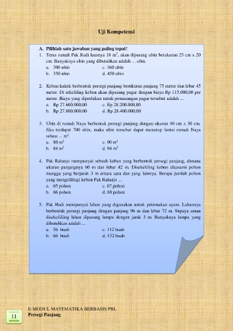 4. Pak Raharjo mempunyai sebuah kebun yang berbentuk persegi panjang, dimana