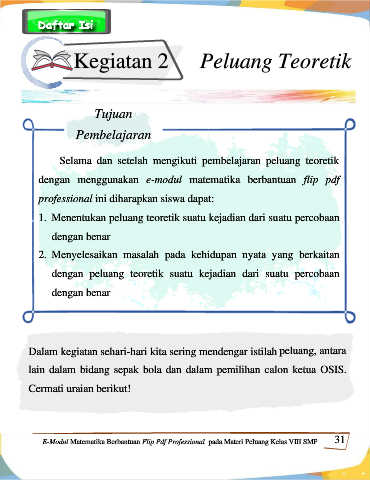 32 E-Modul Matematika Berbantuan Flip Pdf Professional pada Materi Peluang Kelas VIII SMP