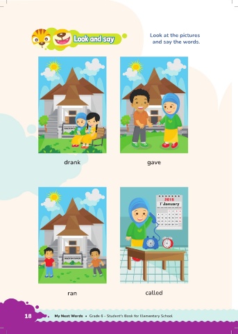 Look and say Look at the pictures Look and say Look and say Look and say and say the words. drank gave ran called 18 My Next Words • Grade 6 - Student's Book for Elementary School
