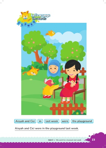 Let’s arrange s arrange s arrange t’ t’ Le Le Le t’ s arrange ords ords ords the w the words the w the w Aisyah and Cici in last week were the playground Aisyah and Cici were in the playground last week. Unit 2 • We went to a museum last week 23
