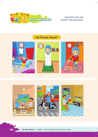 Read the text and R R Read and answeread and answer answer the questions. w er Read and answer ead and ans My Friend, Aisyah 58 My Next Words • Grade 6 - Student's Book for Elementary School