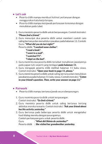 aktivitas mereka kemarin. Contoh instruksi: “Ask your friend about
