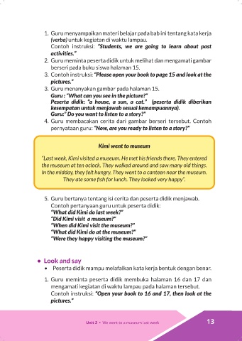 Contoh instruksi: “Open your book to 16 and 17, then look at the