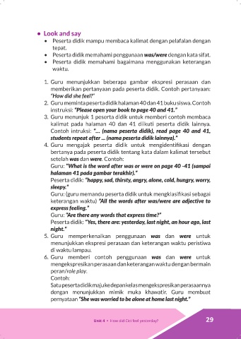 Contoh intruksi: “… (nama peserta didik), read page 40 and 41,
