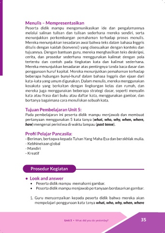 Pada pembelajaran ini peserta didik mampu menjawab dan membuat