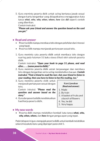 5. Guru meminta peserta didik untuk saling bertanya jawab sesuai