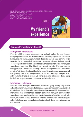 40 Teacher’s Book • My Next Words Grade 6