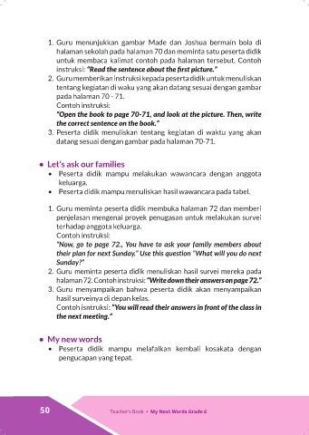 1. Guru meminta peserta didik membuka halaman 72 dan memberi