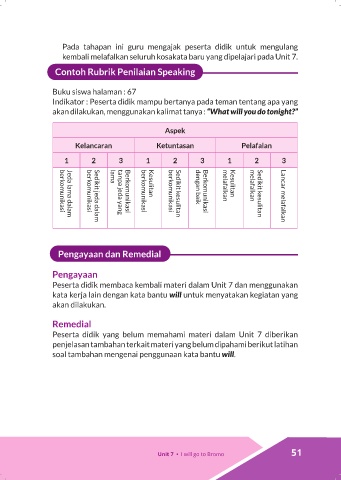 Peserta didik membaca kembali materi dalam Unit 7 dan menggunakan