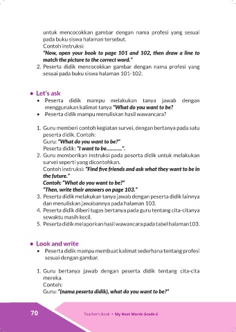 2. Peserta didik mencocokkan gambar dengan nama profesi yang 2. I want to be a teacher.