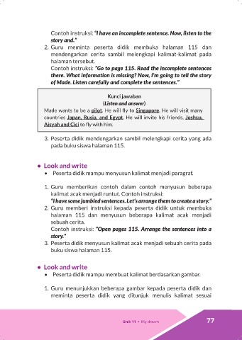 Contoh instruksi: “Go to page 115. Read the incomplete sentences