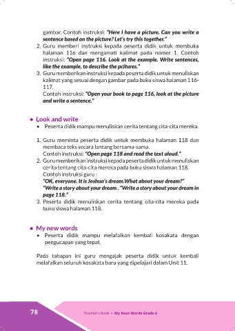 Contoh instruksi: “Open your book to page 116, look at the picture