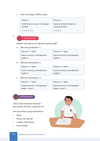 Pemain 1: 1 dadu Pemain 2: 1 dadu