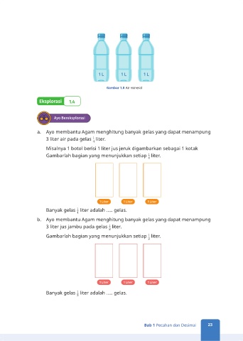 b. Ayo membantu Agam menghitung banyak gelas yang dapat menampung