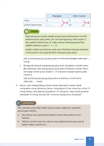 perbandingan yang sama. Jika rasio pengunjung roller coaster 3