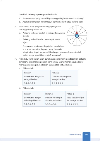 mendapatkan angka 3. Jelaskan alasan atas pilihan kalian!
