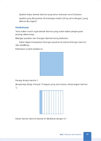 Jika persegi dibagi menjadi 10 bagian yang sama besar, setiap bagian bernilai