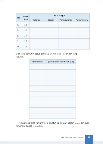 Isilah tabel berikut ini sesuai dengan jarak rumah ke sekolah dari yang
