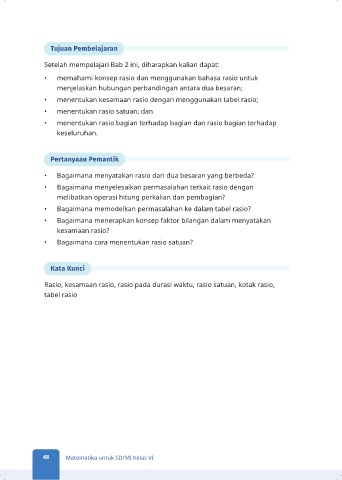 • memahami konsep rasio dan menggunakan bahasa rasio untuk