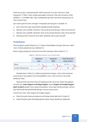 Rasio angka penjualan tanaman hias dan tanaman obat adalah 4 : 5.