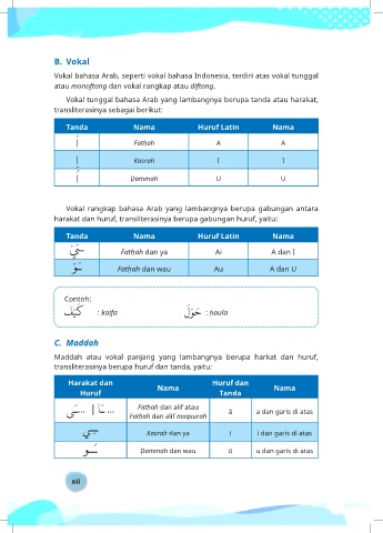 Vokal bahasa Arab, seperti vokal bahasa Indonesia, terdiri atas vokal tunggal