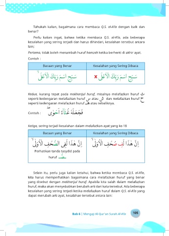 kesalahan yang sering terjadi ketika melafazkan huruf dalam Q.S. al-A’la yang