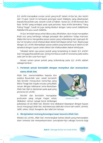 dengan Q.S. al-A’la. Mempelajari pesan pokok yang terkandung di dalam surah